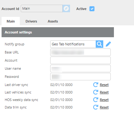 Last asset sync | Enter the password used for tracking and HOS data. |