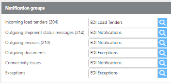 Incoming load tenders (204) | The user group that will be notified when new load tenders are received. |