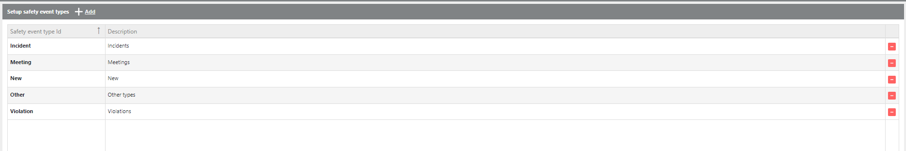 Description | The label that will be displayed for this safety event type throughout the system. |
