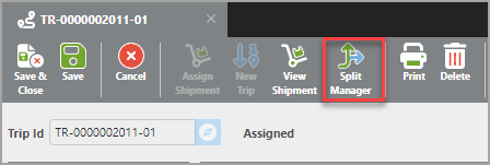 Use the Split Manager to split a shipment into multiple trip legs.