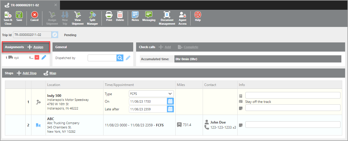 Assign a driver to the second leg of the trip.