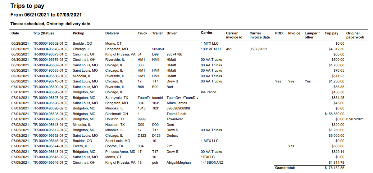 Original paperwork | Here select if this report should display data for loads with original paperwork, without, or both. |