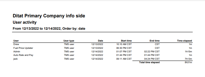 Time elapsed | This field will display the total time of the user's activity. |